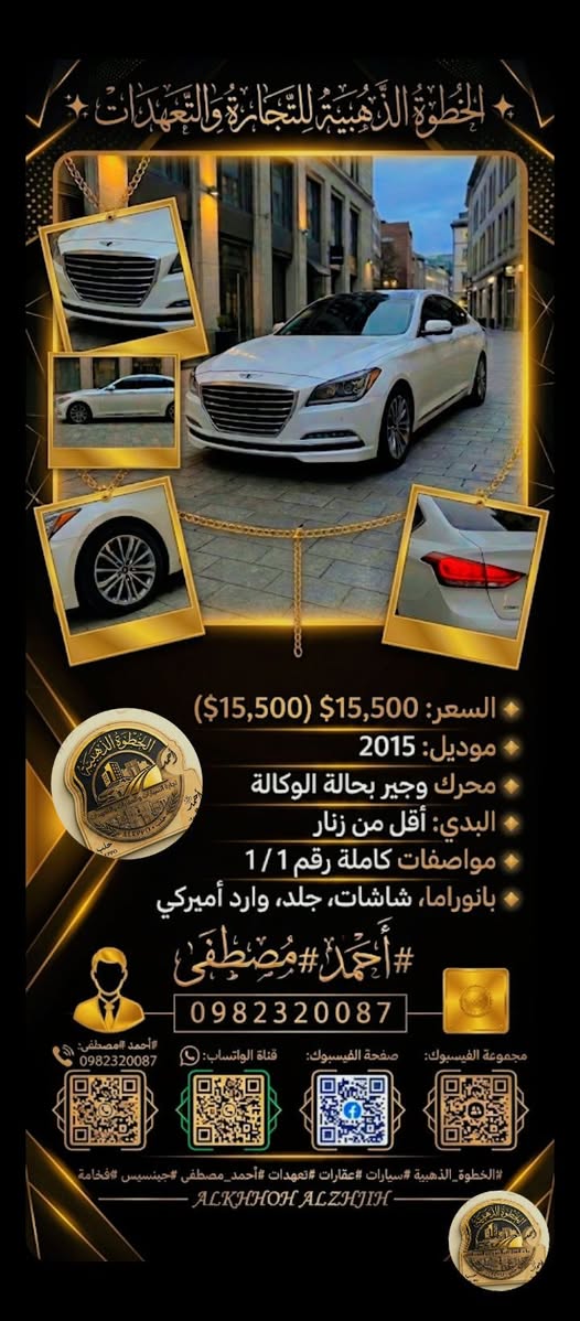 بـ 𝟏𝟓,𝟓𝟎𝟎$ بتخود من أحمدمصطفى: #جـيـنـسـيـس (#وارد #أميركي #مـوديل𝟐𝟎𝟏𝟓) مـواصـفـات الـسـيـارة #موديل [𝟐𝟎𝟏𝟓 / 𝟐𝟎𝟏𝟓] محرك وجير بحالة الوكالة البدي: أقل من زنار (نظافة تامة) مواصفات كاملة رقم 1 / 1 ( بانوراما/ شاشات /جلد...) جاهزية تامة للفحص والتسليم الفوري السعـر: 𝟏𝟓,𝟓𝟎𝟎$ (وسكرة بسيطة) ━━━━━━━━━━━━━ نستقبل عروضكم (سيارات - عقارات) #أحمد #مصطفى:𝟎𝟗𝟖𝟐𝟑𝟐𝟎𝟎𝟖𝟕 ━━━━━━━━━━━━━ قنـــاة الواتســـاب: https://whatsapp.com/channel/0029VbAPZlFISTkExNQVbv0C صفحـــة الـفـيــسبـــوك: https://www.facebook.com/share/1BEqinDd24/ مجموعـــة الـفـيسـبــوك: https://www.facebook.com/share/g/1DGcGgakWw/ #الخطوة_الذهبية #سيارات #عقارات #تعهدات #أحمد_مصطفى ━━━━━━━━━━━━━ رابط المنشور الأصلي على الفيسبوك: https://www.facebook.com/groups/3274989536059823/posts/122173146146859440/