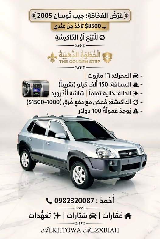من المالك مباشر توسان كرت ٢٠٠٦ محرك ٢٠مازوت خاليه من جوا تماما سقف خالي زنار واطي اكمل وصف ناقصه الفتحه اوتوماتيك اب اس جلد رباعي جنط مكنيك دوزان دهب السعر ٧.٦٠٠$ تواجد دمشق للتواصل ٠٩٣٢٣٧١٤١٥ رابط المنشور الأصلي على الفيسبوك: https://www.facebook.com/groups/1270230716390311/posts/26435221352797900/