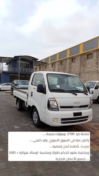 ▪︎السيارة الكيا 2700اكمل وصف 2026بسعر مغررري ▪︎كمان #هالمرة غير #جيب الكااااش وأنهي #النقاش #نـوع الـسـيـارة:الكيا 2700 #سـنـة الصنع:2026تسجيل 2026 •المسافة المقطوعة :0كم نمرة سورية مجمركة/تواجد دمشق المواصفات : كاملة المواصفات رقم رقم 1.الخ... ▪︎عروضنا على انستغرام https://www.instagram.com/nsymdyb86?igsh=MW1iOTd6NnJ5YXN6MA== عروض أخرى https://www.instagram.com/markting1986?igsh=MW9xdjhzZW1ndGFmdQ== ▪︎للاستعلام وحجز المواعيد فقط رجاءااااااا(الاتصال) 0994185185اتصال عادي 0939327328 اتصال وتساب ▪︎عمولة معرض 2٪ ▪︎ملاحظة :السعر على طلب المالك لعرض سياراتكم لدينا تواصل 0994185185وتساب 0939327328 وتساب تصوير ريلات انستغرام مع تصوير احترافي جدا (للشركات ) يوجد باقات شهرية وباقات لثلاثة أشهر وعروض مغرية أخرى رابط المنشور الأصلي على الفيسبوك: https://www.facebook.com/groups/2117491958605528/posts/1282723914024677/